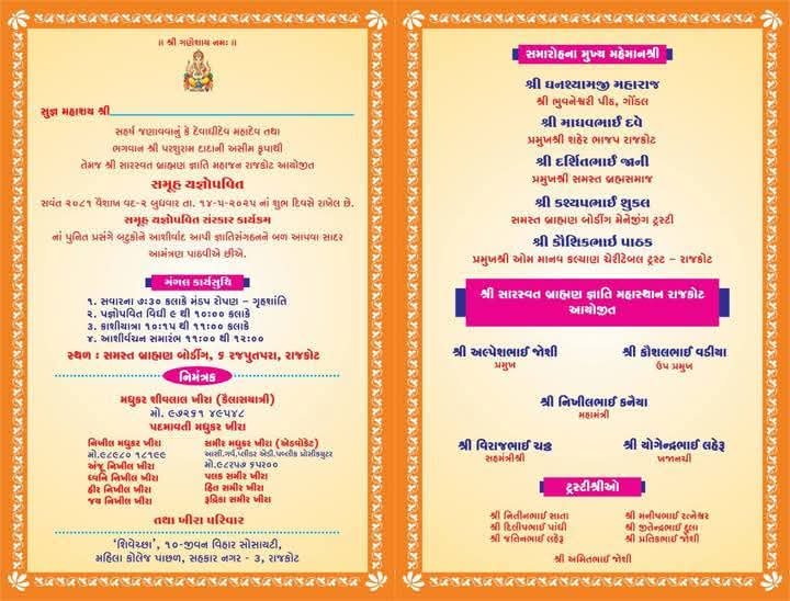 શ્રી સારસ્વત બ્રાહ્મણ જ્ઞાતિ મહાસ્થાન, રાજકોટ આયોજીત